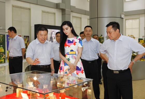 圖為長壽花品牌代言人國際影星范冰冰到長壽花生產廠區參觀